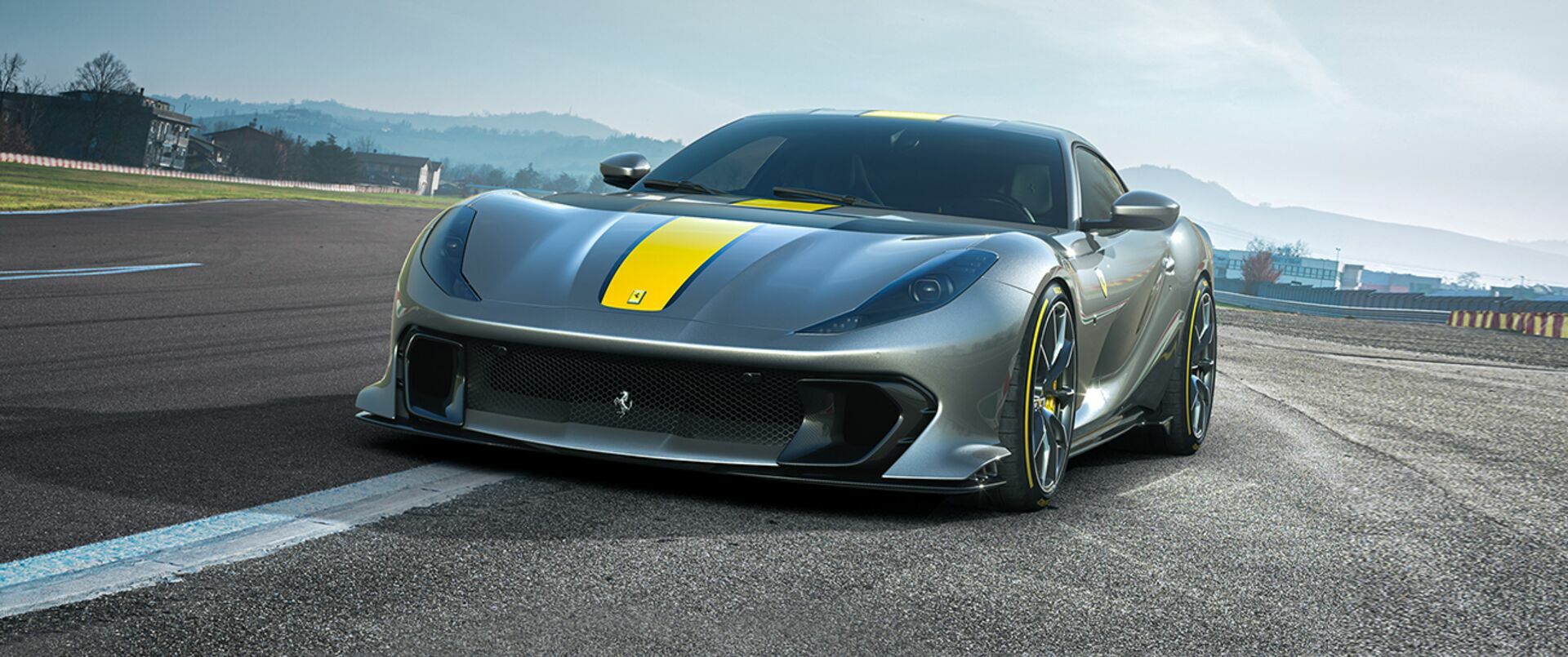 Profound changes to the car’s shape have created extreme profiles never before seen on a road car: From the new front air conveyers to the replacement of the rear window with an aluminium structure (patented) which houses vortex generators, each modification is faithful to Ferrari’s philosophy that form follows function. Aluminium rear window and carbon fibre blade on the bonnet alter the car’s sense of volume compared to the 812 Superfast. While the front appears shorter, the transom is more imposing, almost horizontal.